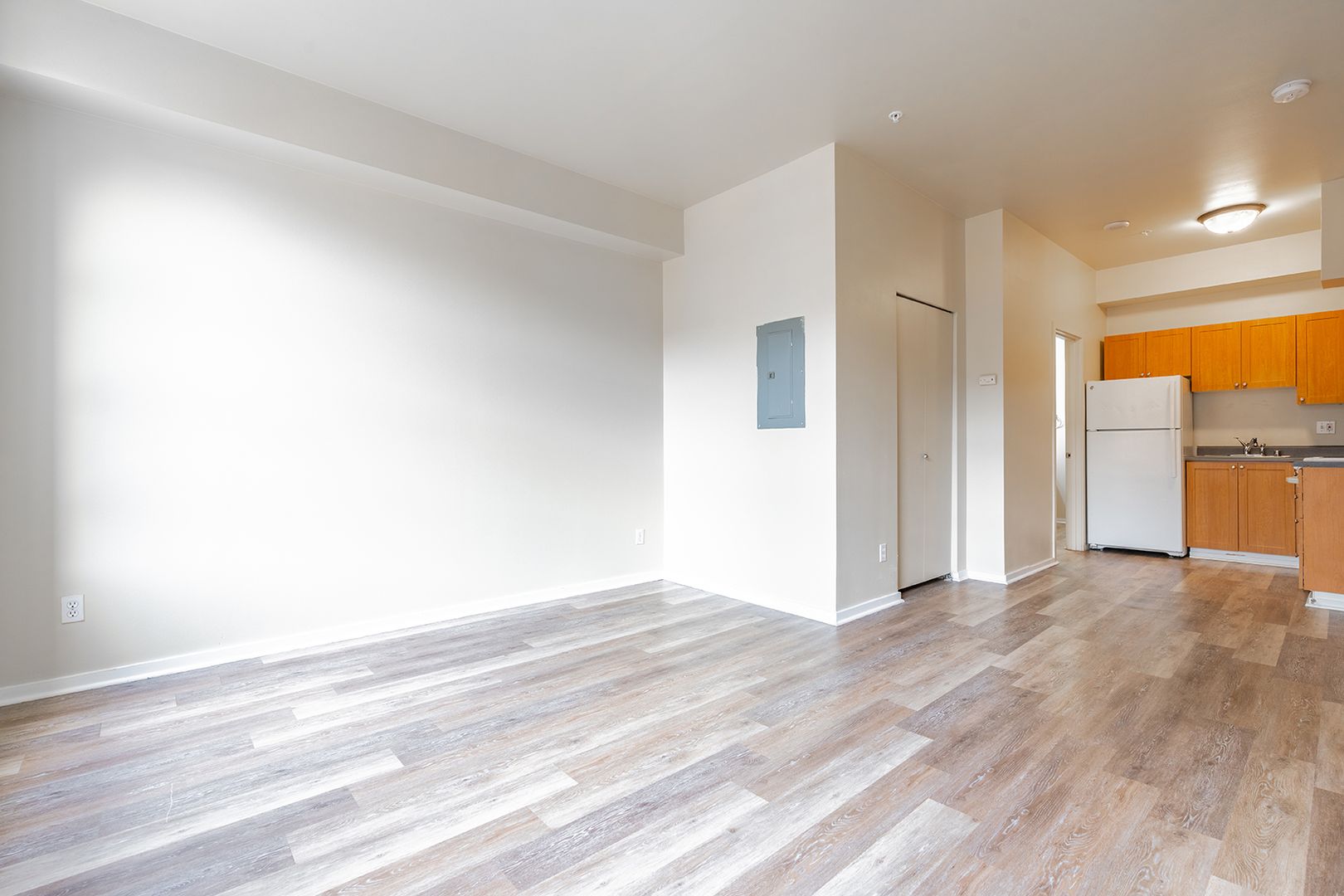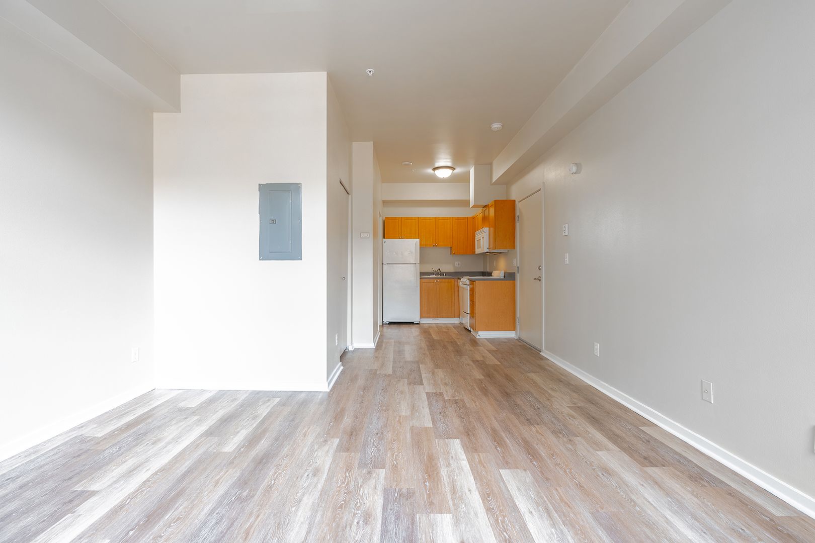 Our thoughtfully designed studio apartment homes feature fully equipped kitchens, spacious living areas, plush wall-to-wall carpeting, and ample closet space. Plus, we know that home isn't complete without your furry friends, we happily welcome pets!