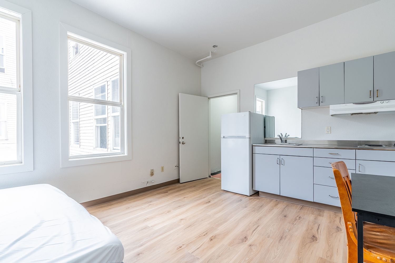 Embrace timeless elegance in these recently renovated studio apartments nestled within a classic Columbia City building. These cozy yet refined spaces combine modern comforts with historic charm. Experience the best of Seattle living with proximity to local gems and public transport. Each apartment is a spacious studio with its own closet and a full kitchen including a sink. The apartments have all been lovingly restored with brand new floors, fixtures and more, and feature shared bathrooms which are meticulously maintained by our on-site team.